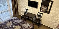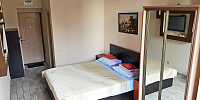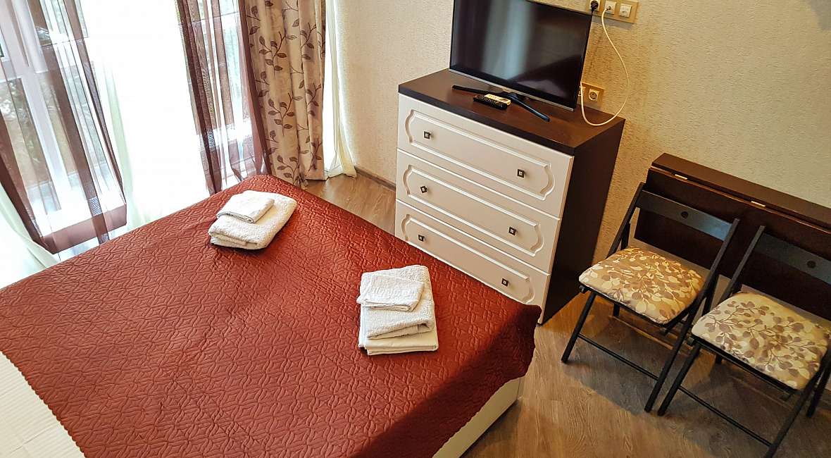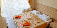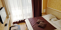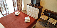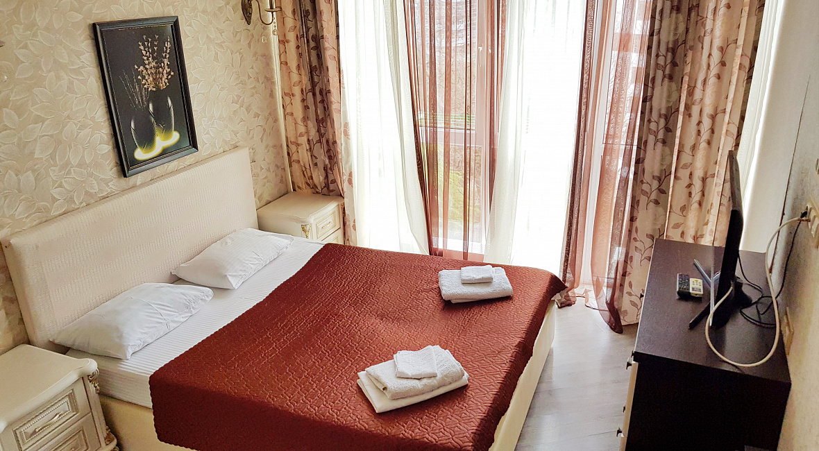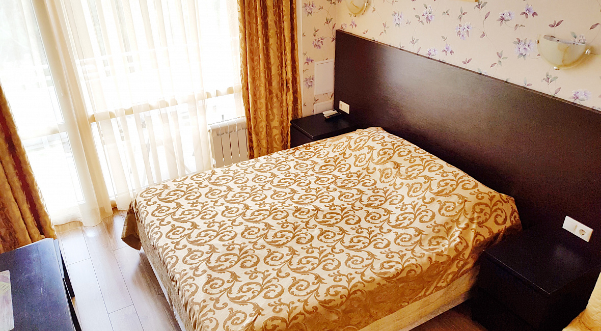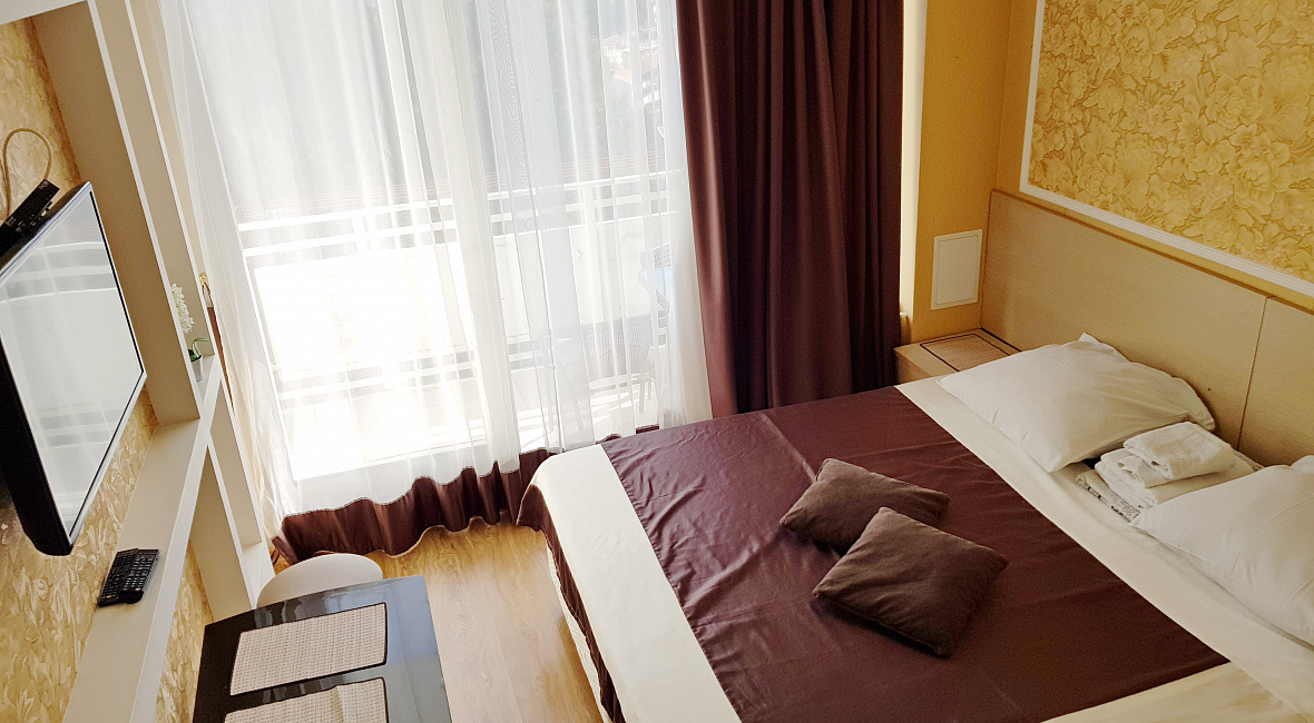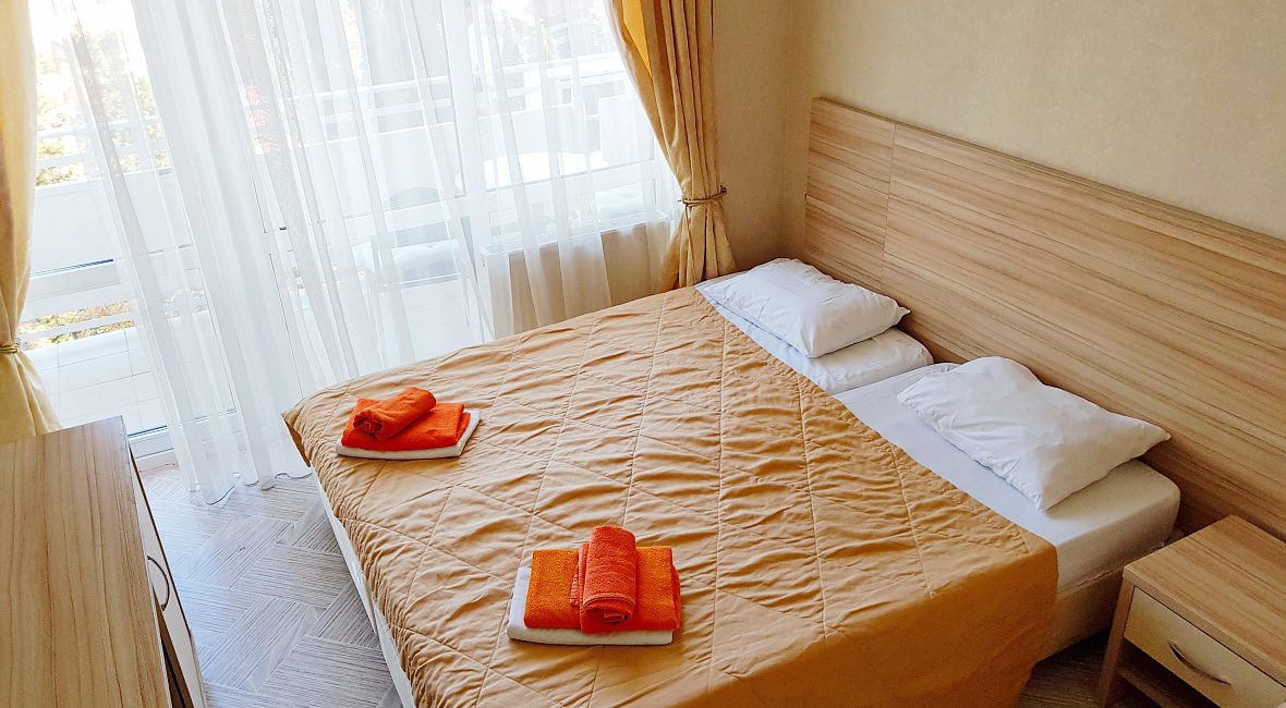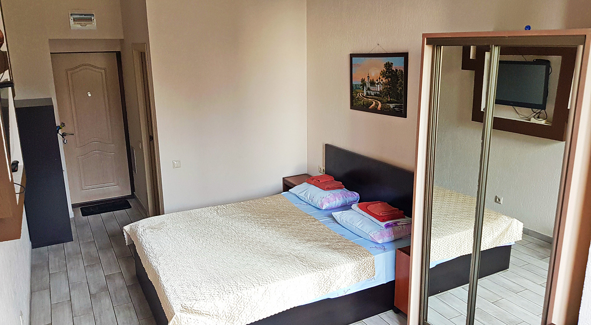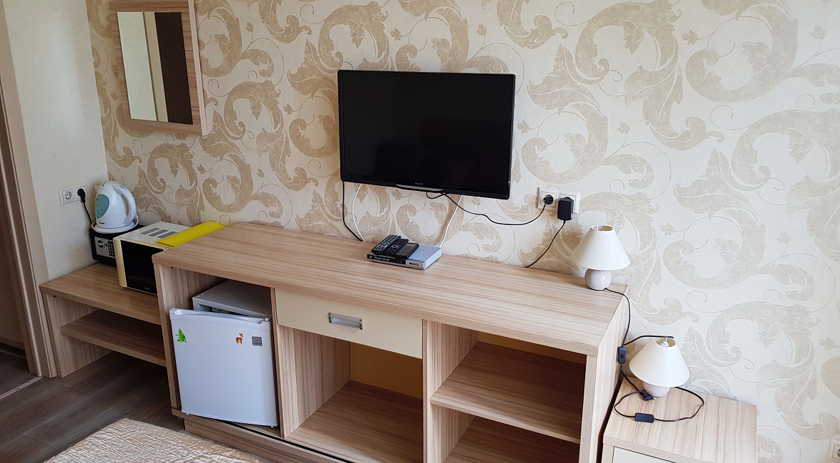 Номер включает в себя: двухспальную кровать 160 см х 200 см (или 2 раздельные односпальные кровати – 80 см х 200 см каждая), санузел с душевой кабиной, ЖК ТВ с плоским экраном, холодильник, кондиционер, бесплатный Wi-Fi, фен, электрический чайник, посуду для приема пищи и напитков, обеденный уголок, утюг с гладильной доской, одноразовые косметические принадлежности и тапочки.